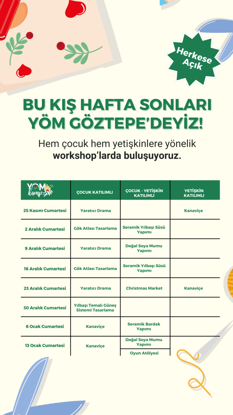 Kasım, Aralık ve Ocak aylarında Cumartesi günleri 10.30-12.00 saatleri arasında Yöm okulları Göztepe Yerleşkesinde düzenleyeceğimiz eğitimlerimizi inceleyebilir ve kayıt olabilirsiniz.